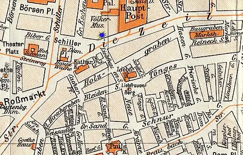 - ↑ Battonn 1871, S. 102; bereits 1332 wird ein Haus an der späteren Zeil urkundlich als „sitae in foro pecorum“ genannt, 1348 ist die Rede von „dem Vehemerkete“.