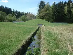 (Im Hintergrund die Sendeanlagen des Geiersbergs) Der Weihersbach kurz vor dem Zusammenfluss | ||