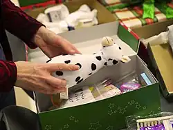 Weihnachten im Schuhkarton ist eine seit 1996 im deutschsprachigen Raum stattfindende Sammelaktion für Weihnachtsgeschenke für Kinder. Die Geschenkübergabe ist nach Ansicht von Kritikern mit Missionierung verbunden.[1] Zunächst wurde sie von der Billy Graham Evangelistic Association getragen, ab 2002 von dem Verein mit evangelikalem Hintergrund Geschenke der Hoffnung, Im Jahr 2019 in Samaritan’s Purse – Die barmherzigen Samariter umbenannt.[2] Weihnachten im Schuhkarton ist Teil der weltweit stattfindenden Operation Christmas Child, die seit 1993 von der amerikanischen Hilfsorganisation Samaritan’s Purse organisiert wird. Die Geschenkboxen aus dem deutschsprachigen Raum gehen überwiegend nach Osteuropa.