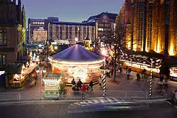 Mit dem Markt in der Altstadt verbunden ist der Weihnachtsmarkt auf dem Ernst-August-Platz, dem Vorplatz des Hauptbahnhofs. Er wurde im Jahr 2000 eingeführt und richtet sich vor allem an Bahnreisende. Seit 2009 bleibt er bis zum 30. Dezember geöffnet. Für das Jahr 2018 waren 40 Stände angemeldet.[6] Seit 2023 heißt der Markt Weihnachtsdorf Hannover, wird vom Circus Theater Roncalli veranstaltet und bietet über 50 Stände, ein historisches Riesenrad und weitere Attraktionen.
