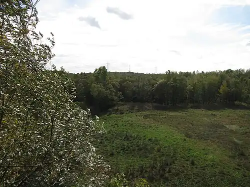 ![]() Blick vom nördlichen Aussichtsturm in die ehemalige Kiesgrube | ||