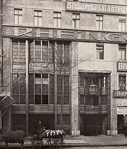 - ↑ Julius Posener: Berlin auf dem Wege zu einer neuen Architektur: das Zeitalter Wilhelms II. Prestel, München 1979, ISBN 3-7913-0419-4, S. 99 und 14. Abbildung der Fassade an der Leipziger Straße 40.