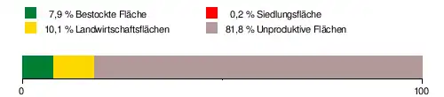 Es besteht zu 7,9 % aus bestockter Fläche, zu 10,1 % aus Landwirtschaftsfläche, zu 0,2 % aus Siedlungsfläche und zu 81,8 % aus unproduktiven Flächen.