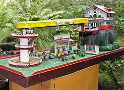 Die Gondelbahn stammt aus den frühen 1960er Jahren.[35] Es war nach der Bockwindmühle das zweite Modell, für das eine Patenschaft gefunden werden konnte.[36][37] Im Winter 2007/08 wurde das Modell von Schülern der Werkstattschule Hannover gewartet.[36][37] Am 13. Juni 2008 wurde ein unbefristeter Kooperationsvertrag mit der Werkstattschule unterzeichnet, die sich weiterhin um die Gondelbahn kümmert.[12][13] In der Saison 2011 kehrte das Modell nach vierjähriger Abwesenheit an den Bachlauf zurück.[35] Für die Saison 2014 erhielt es ein neues Untergestell.[38]