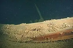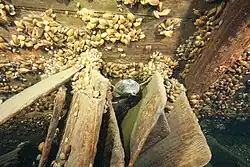 Teile des Seebodens und Hartsubstrate sind mit invasiven Dreikantmuscheln bedeckt.