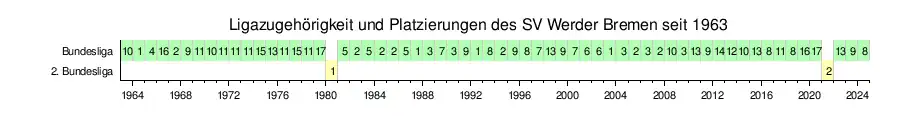 Mit 14 nationalen Titeln (viermal Deutscher Meister, sechsmal DFB-Pokalsieger, dreimal Supercup- und einmal Ligapokalsieger) zählt Werder zu den erfolgreichsten Fußballvereinen des Landes. International steht der Gewinn des Europapokals der Pokalsieger 1992 zu Buche. Sowohl in der Ewigen Tabelle der Bundesliga[3] als auch in der Ewigen Tabelle des DFB-Pokals belegt Bremen den dritten Platz.