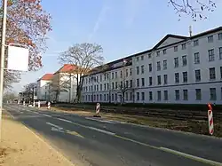 - Nr. 4: 3.gesch. 40-achsiges Verwaltungsgebäude des Staatlichen Bau- und Liegenschaftsamtes Schwerin (SBL) mit einem 4-gesch. 10-achsigen Mittelrisalit, früher Jäger-Kaserne des Jäger-Bataillon Nr. 14