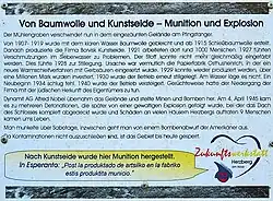 Von 1918 bis 1935 befand sich auf dem Werksgelände eine Kunstseidenspinnerei, bevor es im Juni 1940 in den Besitz der reichseigenen Verwertungsgesellschaft für Montanindustrie GmbH überging. Nach umfangreichen Um- und Ausbaumaßnahmen wurde dort ab Frühjahr 1941 eine Füllstelle für Sprengstoff betrieben. In dieser Tochterfirma der Dynamit Nobel AG (DAG) wurden unter Verwendung von flüssigem Trinitrotoluol (TNT) hauptsächlich Tellerminen und Granaten kleineren Kalibers produziert, bis sie am 4. April 1945 durch einen Brand, der mehrere gewaltige Explosionen auslöste, fast vollständig zerstört wurde. Bei dem Unglück kamen insgesamt 29 Personen ums Leben, weitere wurden schwer verletzt. Zwischen 1942 und der Produktionseinstellung im Frühjahr 1945 beschäftigte das Werk zwischen 650 und über 900 Männer und Frauen, darunter zahlreiche ausländische Arbeitskräfte und Zwangsarbeiter.