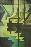56-105 | Komposition | 1956 | Öl | Nessel | 90 | 60 | HB 5/56 | Ahrenshoop 2019 | Privatbesitz. | 56-202, | ||