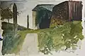 54-425 | Weg mit Sandkasten | 1954 | Aquarell | 27,5 | 39 | H.Brass 1954 | Privatbesitz | |||||