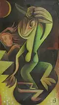 56-106 | Magisches Theater | 1956 | Öl | Nessel | 60 | 90 | HB 6/56 | Bunte Stube 1987, Wuhlgarten 2003, Wesel 2010, Marzahn 2010, Ahrenshoop 2019 | Privatbesitz. | 56-203, | ||
