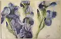 55-107 | Violette Schwertlilien | 1955 | Öl | Nessel | 55 | 65 | HB 7/55 | Privatbesitz. | ||||