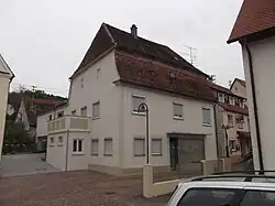 - ↑ Bewertung des Hauses durch das Landesamt für Denkmalpflege: „(…) Der bestehende Bau 1758 an der Stelle des ursprünglichen errichtet. Zweigeschossiger Putzbau unter Mansarddach mit Schopfwalm. An der Frontseite eingezogene Wiederkehr. Bau mit originalem Dachstuhl durch die Umnutzung nach der Privatisierung im Innern umstrukturiert. Von der ehemals aufwendigen Außengestaltung noch einige Details erhalten so z. B. das profilierte Traufgesims und das auf die frühere Fassadengliederung verweisende Pilasterkapitell unter der Wiederkehr. An der Erhaltung dieses für seine Zeit typischen Baus, der heute noch durch seine stattlichen Ausmaße, durch die Spuren der ehemals reichen Gestaltung auf die großzügige Ausstattung dieser ehemaligen Pfründenstelle verweist, besteht daher aus heimatgeschichtlichen und wissenschaftlichen Gründen ein öffentliches Interesse“ (Landesdenkmalamt Baden-Württemberg ohne Jahr).