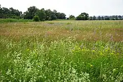 In der natürlichen Vegetation besitzen Sternmieren-Eichen-Hainbuchenwälder, einschließlich der flussbegleitenden Erlen- und Weidenwälder, den größten Anteil. Sie gelten als typisch für breite Talauen mittelgroßer Flüsse mit zeitweilig oder dauerhaft feuchten Böden. Abhängig von der Geländesituation sind auch Standorte mit Feucht-, Sumpf- oder Bruchwäldern vorhanden.[1][5]