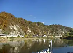 Direkt hinter dem heutigen Trassenverlauf der B 83 erheben sich hier die teilweise sehr steilen Felsen des Prallhanges, die somit nur teilweise mit Vegetation bedeckt sind.