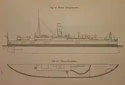 - Crocodill: Stapellauf am 13. September 1879. Die erste Indienststellung fand am 20. September 1880 statt. In den Jahren 1884, 1894/95, 1897 und 1900 fand das Boot erneut Verwendung. Nach der Streichung aus der Liste der Kriegsschiffe am 18. März 1911 nutzte man die Crocodill als Zielschiff und ab 1913 als schwimmende Werkstatt. Nach 1918 wurde das Boot abgewrackt.[12]