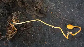 Fruchtkörper von Ophiocordyceps sphecocephala auf dem Kadaver einer Wespenart in Yunnan. | ||||||||||||