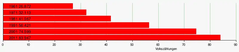| Volkszählung 1961 | Volkszählung 1971 | Volkszählung 1981 | Volkszählung 1991 | Volkszählung 2001 | Volkszählung 2011 | |||||||