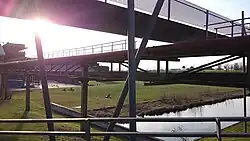 Im Westen führt der Weg über einen schmalen Damm des „Nordpols“ durch lichten Birkenwald an der „Wasserlandschaft altes Kühlwerk“ vorbei zur „Nordpolbrücke“. Die neue Brücke überwindet eine tiefe Schlucht von Zufahrtswegen und die Gleistrasse der „Bergbahn“. Von der nachts interaktiv beleuchteten Brücke bietet sich der beste Blick auf die umgebaute Jahrhunderthalle; sie ermöglicht zudem den Anschluss an das Plateau des ehemaligen Stahlwerks. Die Fläche der ehemaligen Stahlwerkshallen ist einer Wohnbebauung vorbehalten.