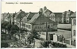 Im November 1910 bemühte sich die Stadt Frankenberg beim Kriegsministerium des Königreichs Sachsen im Deutschen Kaiserreich um die Errichtung einer Garnison. Doch das Gesuch wurde abgelehnt. Am 11. Februar 1913 wandte sich das Ministerium an die Stadt, ob noch Interesse an einer Truppenstationierung und am Bau einer Kasernenanlage bestünde. Bereits einen Tag später reiste der Bürgermeister von Frankenberg zu einem Gespräch nach Dresden. Bis zum Herbst 1915 wurde durch die sächsische Regierung in Aussicht gestellt, Frankenberg zu einem vollständigen Garnisonsstandort auszubauen. Als Voraussetzung wurde die Überlassung von 9 Hektar Land gefordert. Ab 15. Februar 1915 begann die Stadt mit dem Erwerb von Grundstücken. Die verbindliche Zusage für den Bau der Kaserne erhielt die Stadt jedoch erst am 17. März 1913. Ein Reichstagsgesetzentwurf zur Errichtung der Garnison für 2,9 Millionen Goldmark lag am 13. April 1913 vor. Die Gesamtanlage untergliederte sich in den westlichen Bereich zur Unterbringung der Sächsischen Unteroffiziersschule, einen mittleren Teil mit Unterkunftsbereich und Stallungen für eine Traineinheit sowie in den östlichen Abschnitt mit dem Garnisonslazarett. Am 4. Juli 1913 begannen die Bauarbeiten und bis Jahresende wurden insgesamt 23 Gebäude, hauptsächlich Stallungen, Gerätehallen und Werkstätten in Angriff genommen. Die 4./Trainbataillon 19 bezog jedoch im Oktober 1913 zunächst Ersatzquartiere, da die Unterkunftsgebäude noch nicht zur Verfügung standen. Die Fertigstellung der Kasernengebäude verzögerte sich durch den Beginn des Ersten Weltkriegs. Es wurden bis zu 400 französische Kriegsgefangene auf der Baustelle eingesetzt. Am 1. März 1915 zogen die ersten Soldaten ein. Die Arbeiten an den Kasernenbauten konnten erst 1916 abgeschlossen werden. Die 4./Trainbataillon 19 war mit Kriegsausbruch an die Front verlegt worden. In Frankenberg wurde das II. Ersatzbataillon des Infanterieregiments 104 „Kronprinz“ stationiert, das jedoch ebenfalls zunächst in Interimsquartieren untergebracht werden musste. Am 1. Juni 1916 bezog die zuvor in Marienberg eingerichtete Sächsische Unteroffiziersschule die neue Kaserne. Das II. Ersatzbataillon des Infanterieregiments 104 „Kronprinz“ wurde im November 1917 aufgelöst und im Dezember 1917 durch das Ersatzbataillon des Reserveinfanterieregiments 106 ersetzt. Noch kurz vor Kriegsende, am 15. Oktober 1918, kam das Ersatzbataillon des Fußartillerieregiments 12 in die Kaserne. Es wurde im April 1919 aufgelöst. Die Bemühungen der Stadt um den Fortbestand der Garnison beim Freistaat Sachsen und in der Weimarer Republik hatten keinen Erfolg. Geschlossen wurde im März 1920 auch die Sächsische Unteroffiziersschule. Das Übergangsheer und die Reichswehr waren von 1919 bis 1922 noch vertreten durch das I./Reichswehrregiment 37, das III./Reichswehrregiment 38, das I./Infanterieregiment 11 und die Halbeskadron von Mannsbach. Am 12. März 1922 wurde die Garnison mit Auszug des letzten Soldaten aufgegeben. Die Stadt Frankenberg mietete die Kaserne. Es entstand ein Gewerbegebiet mit Metall- und Textilbetrieben, Tabakfabrik, Wäscherei, Gewerkschaftsheim und Jugendherberge. Die Metallwerke Frankenberg beschäftigten hier Ende der 1920er Jahre über 700 Mitarbeiter.[1][2][3][4]