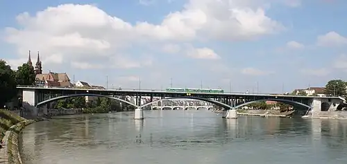 - ↑ a b Othmar Birkner, Hanspeter Rebsamen: Basel. In: Gesellschaft für Schweizerische Kunstgeschichte (Hrsg.): INSA Inventar der neueren Schweizer Architektur 1850–1920. Band 2. GSK, Bern 1986, ISBN 3-280-01716-5, Wettsteinbrücke, S. 228, doi:10.5169/seals-3532 (e-periodica.ch).
