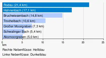 | Linke Nebenflüsse | Platenkampgraben, Mühlenbach, Hahnenbach, Rodau, Abzugsgraben Suchan-Stelling | |
