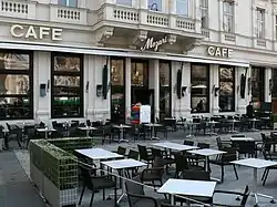 Neu hinzugekommen ist 1935 das anstelle einer Eisenwarenhandlung entstandene Café Ministerium (Georg-Coch-Platz 4 / Ecke Stubenring 6). - ↑ Andrea Gleininger: Der Kaffeehausstuhl Nr. 14 von Michael Thonet. Birkhäuser, Frankfurt/M. 1998, ISBN 3-7643-6832-2.
