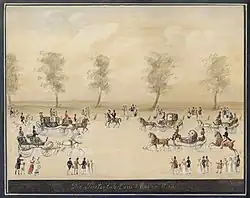 Seit Mitte des 19. Jahrhunderts fanden alljährlich am 1. Mai die kaiserlich-königlichen Praterfahrten statt, die zu einem der wichtigsten inoffiziellen Feste für das Kaiserhaus, Hoch- und Kleinadel und das Volk avancierten. In ihren Memoiren „Im Glanz der Kaiserzeit“ beschrieb Fürstin Nora Fugger 1932 den Pomp und die Ausgelassenheit dieses Spektakels entlang der Praterallee ausführlich[14] :