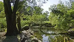 4817 | Das Krebsenwasser reichte Anfang des 20. Jahrhunderts beinahe bis zur Ostbahnbrücke,[46] heute ist nur noch das östliche Ende bei der Grünhaufenbrücke vorhanden. Es wurde 1976 zum Naturdenkmal erklärt. |