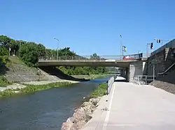 Das tiefe, aber nicht sehr breite neue Flussbett wird an seinem südlichen Ufer seit 1898/1899 über eine lange Strecke von der ehemaligen Wiener Stadtbahn und heutigen U-Bahn-Linie U4 begleitet, deren Trasse ebenfalls von den Brücken überspannt wird. Als gegen Ende des Zweiten Weltkrieges die meisten Wiener Donau- und Donaukanalbrücken von den sich zurückziehenden Wehrmachtsverbänden gesprengt wurden, blieben die strategisch unbedeutenden Wienflussbrücken von Zerstörungen weitestgehend verschont.