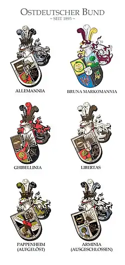 Wappen der im Ostdeutschen Bund zusammengeschlossenen Burschenschaften