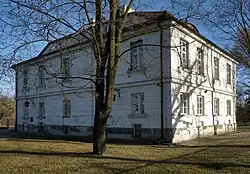 Möglich ist, dass der von Osterhoff errichtete Palast auf einem älteren Gebäude aufbaut. Es könnte sich dabei um ein eingeschossiges Landhaus gehandelt haben, dass in den 1770er Jahren etwa hier von dem Politiker und polnischen Primas Michał Jerzy Poniatowski[4] errichtet worden war und bis in die 1810er Jahre mehrfach erweitert oder umgebaut (eventuell war daran auch der Baumeister Friedrich Albert Lessel beteiligt) wurde.