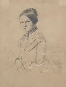 Ludwig Knaus,[24] Sohn eines Augenoptikers aus Schwaben, ist aus heutiger Sicht der erfolgreichste und bekannteste Wiesbadener Maler[25] des 19. Jahrhunderts. Auch er erhielt seine Ausbildung an der Kunstakademie Düsseldorf. Dem Fach Landschaftsmalerei war er wenig zugetan.[26] Er spezialisierte sich auf die Porträt- und Genremalerei, die ihm Ruhm und hohe Auszeichnungen einbrachten. Herzog Adolf von Nassau verlieh Knaus 1856[27] den Professorentitel, deshalb „ist es verwunderlich, daß der Herzog dem gebürtigen Wiesbadener […] nur einen einzigen bescheidenen Auftrag zukommen ließ.“[28] 1866 wanderte er nach Düsseldorf ab, von wo er vom preußischen Ministerium an die Preußische Akademie der Künste abberufen wurde, um dort ein neuerrichtetes Meisteratelier zu übernehmen. Nach einigen Jahren gab er dies Amt wieder auf, um frei arbeiten zu können. Als er in Berlin starb, wurde er auf dem dörflichen Friedhof in Berlin-Dahlem beerdigt.