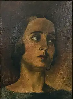 Hans Christiansen,[64] ein Jahr jünger als Jawlensky, zählt zu den bedeutendsten Wiesbadener Malern, die die Klassische Moderne vertreten. 1896–1899 studierte er in Paris an der Académie Julian, wo sein Mal- und Zeichenstil von den Nabis beeinflusst wurde. Als Wegbereiter des Jugendstils hat Christiansen auf dem Gebiet des Kunstgewerbes Außerordentliches geleistet.[65] Er entwarf farbige Fenster mit bildlichen Darstellungen, Möbel, Keramiken und Schmuck. Für die Münchner Zeitschrift Die Jugend arbeitete er als Grafiker. Ab 1911 lehrte Christiansen an der Kunstgewerbeschule in Wiesbaden. 1933 erhielt er Malverbot.
