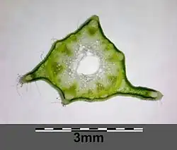 Der Stängel (hier im Querschnitt) ist vierkantig und schmal geflügelt.