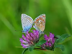 - Gewöhnlicher Wiesenklee (Trifolium pratense L. subsp. pratense): Die ökologischen Zeigerwerte nach Landolt et al. 2010 sind in der Schweiz für diese Unterart: Feuchtezahl F = 3 (mäßig feucht), Lichtzahl L = 4 (hell), Reaktionszahl R = 3 (schwach sauer bis neutral), Temperaturzahl T = 3+ (unter-montan und ober-kollin), Nährstoffzahl N = 3 (mäßig nährstoffarm bis mäßig nährstoffreich), Kontinentalitätszahl K = 3 (subozeanisch bis subkontinental).[10]