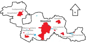 ![]() Lage von Wiesentheid (fett) innerhalb des Gemeindegebietes