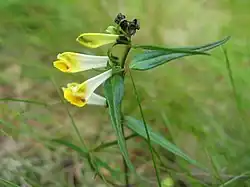 Der Wiesen-Wachtelweizen (Melampyrum pratense) ist ein einjähriger Halbschmarotzer, der mit seinen knotenartig geformten Saugorganen an den Wurzeln anderer Pflanzen, z. B. Fichten, schmarotzt. Sein Name ist wenig zutreffend, da er fast nie in Wiesen vorkommt.