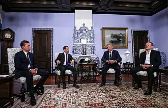 Medwedtschuk blieb der wichtigste pro-russische Politiker der Ukraine.[9] Er war auch im Dezember 2014 Unterhändler zum Gefangenenaustausch zwischen der Ukraine und Russland.[10] Medwedtschuk wurde mehrfach wegen Machtmissbrauchs, Hochverrats, Terrorismusfinanzierung und Geldwäsche angezeigt.[11]