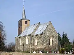 - Die römisch-katholische Filialkirche St. Kasimir (polnisch kościół filialny pw. św. Kazimierza) wurde 1285 erstmals urkundlich erwähnt und im 15. Jahrhundert erneuert. Während der Reformation diente das Gotteshaus als evangelische Tochterkirche von Naselwitz. Der eingezogene Chor ist kreuzgewölbt, die Schildbogen flach, die Diagonalen steile Spitzbogen, Strebepfeiler sind nicht vorhanden. Am Ostfenster hat sich ein Rundstabprofil erhalten. Das spitzbogige Turmportal ist von zwei Rundstäben durchzogen. Ende des 19. Jahrhunderts beinhaltete der Innenraum einen Altarschrein aus dem 16. Jahrhundert, mit den Schnitzfiguren der Apostel Petrus und Paulus sowie der Jungfrau Maria, eingefügt in einen Altaraufbau aus der zweiten Hälfte des 17. Jahrhunderts.[3]