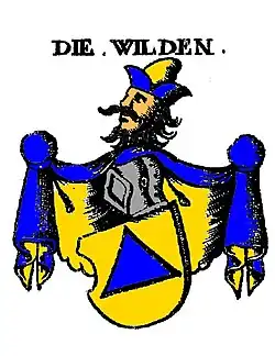 Im Wappen führte das Ratsgeschlecht Wild in Gold ein blaues Dreieck. Helmkleinod: wachsender Rumpf (bzw. Kopf) eines bärtigen Mannes mit blau-gestülpter goldener Mütze („Heidenkopf“). Helmdecken: blau-golden.