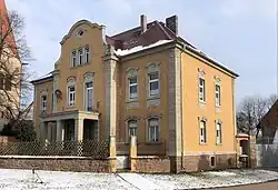 Das repräsentativ gestaltete zweigeschossige Wohnhaus wurde im Jahr 1908 im Jugendstil errichtet. Die sechsachsige Fassade wird von einem zweiachsigen Mittelrisalit geprägt, der von einem geschweiften Giebel bekrönt wird.