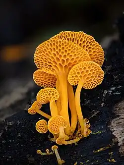 - ↑ Bruno Auf der Maur, Jonas Brännhage, Stefan Blaser und Andrin Gross (2021): Factsheet Neomyceten: Orangeroter Porenhelmling. Birmensdorf, Eidg. Forschungsanstalt WSL. Online (PDF, 1,56 MB), S. 2.