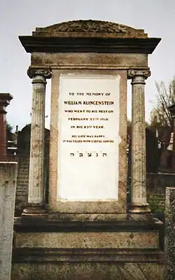 William Klingenstein starb am 27. Februar 1916 in London und wurde dort auf dem jüdischen Friedhof in Willesden beigesetzt. Sein Grabstein trägt die Inschrift „His life was happy. It was filled with useful service.“ („Sein Leben war glücklich. Es war erfüllt von hilfreichem Dienst“).