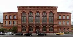 - das Herzogliche Neue Gymnasium (jetzt Wilhelm-Gymnasium) in der Leonhardstraße 63. Der Entwurf erfolgte nach Planungsrichtlinien von Baurat Ernst Wiehe.[13][14]