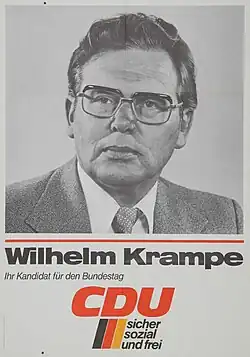 Krampe beantragte am 6. Januar 1943 die Aufnahme in die NSDAP und wurde zum 20. April desselben Jahres aufgenommen (Mitgliedsnummer 9.469.100).[1][2] Er trat dann 1947 der CDU bei, war stellvertretender Landesvorsitzender der Sozialausschüsse Westfalen und wurde 1956 zum Vorsitzenden der Arbeitsgemeinschaft christlicher Arbeitnehmerorganisationen Westfalen-Lippe gewählt.