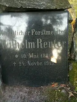 In der Nähe des Forsthauses Siehdichum ließ Wilhelm Reuter 1891 nach dem Tod seiner ersten Frau Marie eine Grabstätte anlegen.[9] Hier wurde 1902 auch seine Tochter Hedwig Eyber, Frau des Forstrats Karl Eyber, bestattet, 1913 Wilhelm Reuter selbst und ein Jahr später seine zweite Frau Emilie.[3] Die vier Gräber sind die ersten des Försterfriedhofs in Siehdichum, der später zum Begräbnisplatz für alle verstorbenen Beschäftigten der Oberförsterei erweitert wurde.