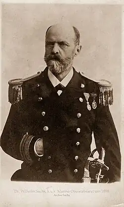 - ↑ Österreichisches Staatsarchiv, Kriegsarchiv, Qualifikationsliste Dr. Wilhelm Sachs, AT-OeStA/KA Marine NMA PA Offiziere und Beamte Akten QL 4858. Abgerufen am 23. September 2024.