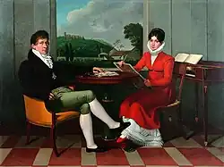 - Doppelporträt des Komponisten Gaspare Spontini und seiner Ehefrau Céleste (Greifswald, Pommersches Landesmuseum), 1813, 160 cm × 216 cm, Öl auf Leinwand