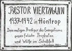 - ↑ Kai-Uwe Spanhofer: Wilhelm Viertmann – Bekenntnis und Widerstand im Leben eines westfälischen Pfarrers in der NS-Zeit. 1988, S. 76.